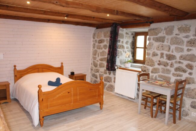 Chambre de charme  Idéale pour 2 à 3 personnes Entrée indépendante 1 lit double Canapé Cheminée Table et chaises Salle d’eau ouverte (douche spacieuse, vasque, sèche cheveux) WC indépendant Terrasse Pique Nique interdit Chambre non-fumeur A partir de 90 € Réservez Autres hébergements et activités
